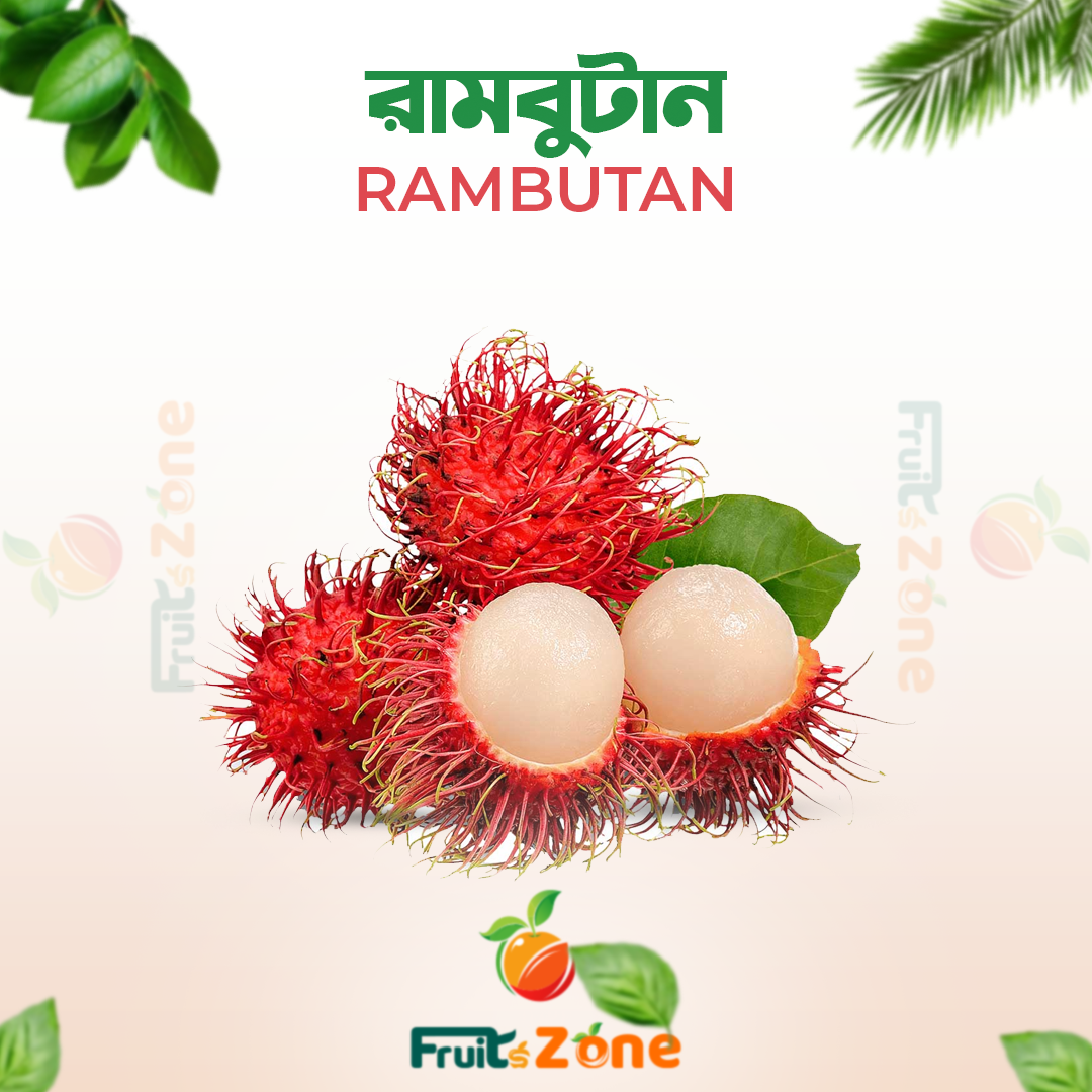 রামবুটান – Rambutan হলো এক অনন্য আমদানি করা ট্রপিকাল ফল, যার উজ্জ্বল লাল রঙের খোসা ও ভিতরের সাদা মিষ্টি ফল একে করে তোলে আকর্ষণীয় ও সুস্বাদু। এর স্বাদ লিচুর মতো মিষ্টি ও রসালো, যা শরীরকে দেয় তাৎক্ষণিক এনার্জি ও সতেজতা। এতে রয়েছে ভিটামিন-সি, ক্যালসিয়াম ও অ্যান্টিঅক্সিডেন্ট যা রোগ প্রতিরোধ ক্ষমতা বৃদ্ধি করে।
