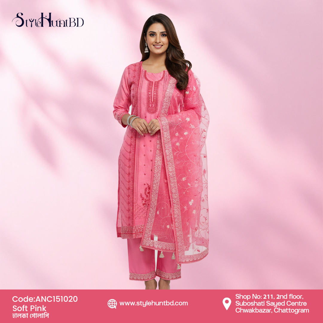 • Set Includes: Kameez, Salwar & Unstitched Dupatta